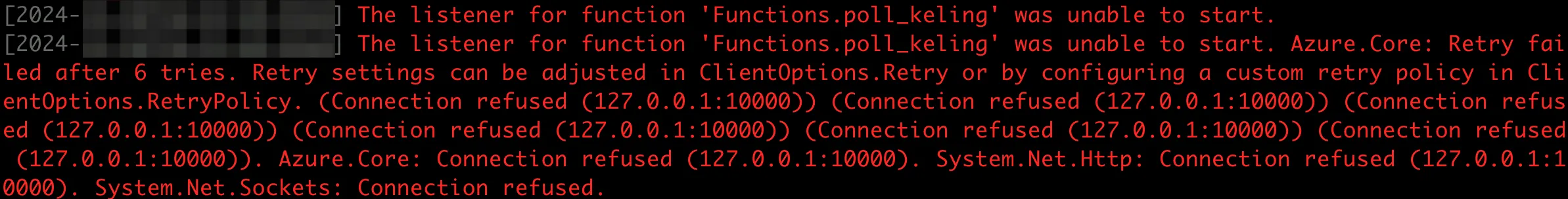 修改下 local.settings.json 的配置,把 AzureWebJobsStorage 设置成 "UseDevelopmentStorage=true"。