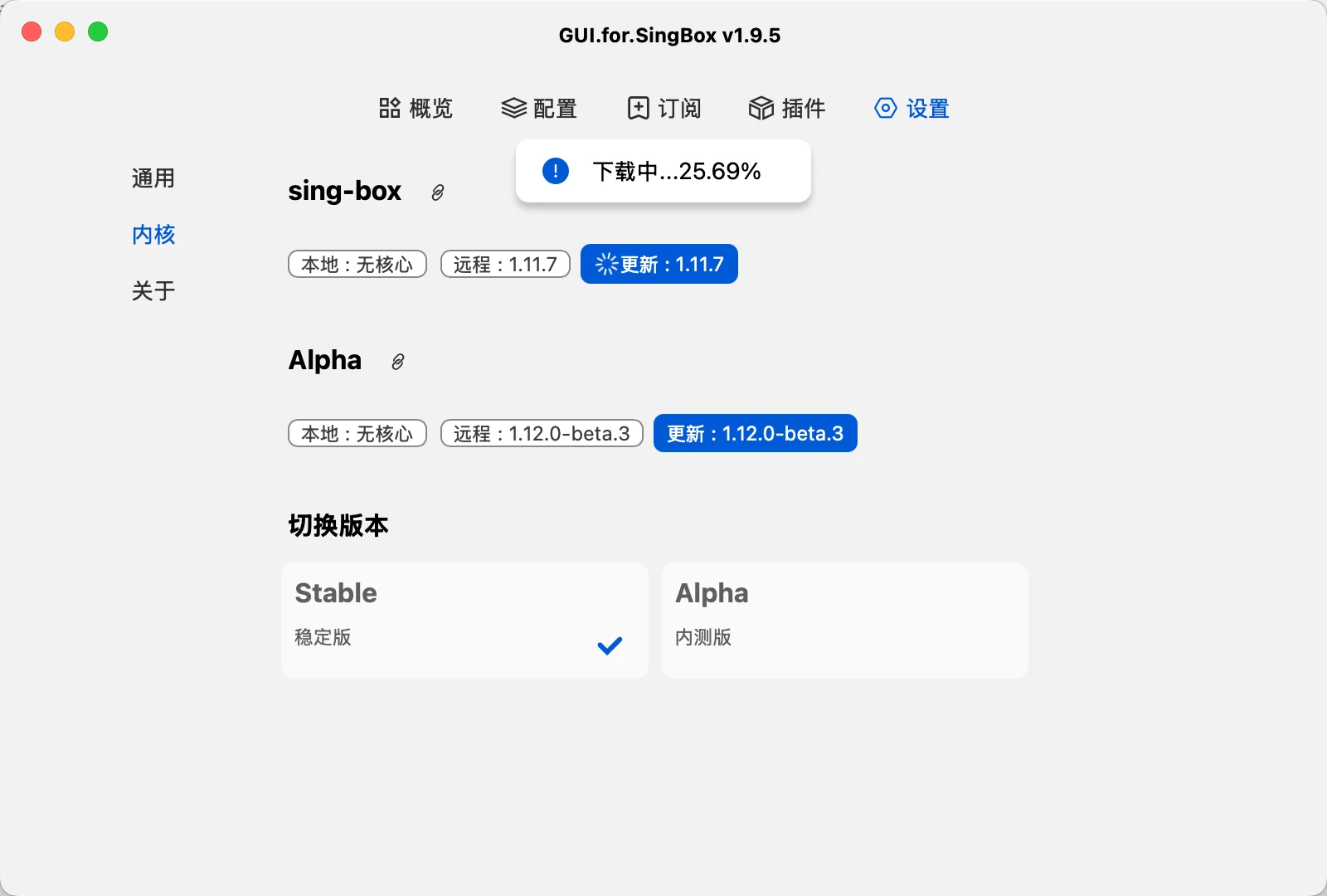 到设置里,找到内核,点击更新,它会开始下载。