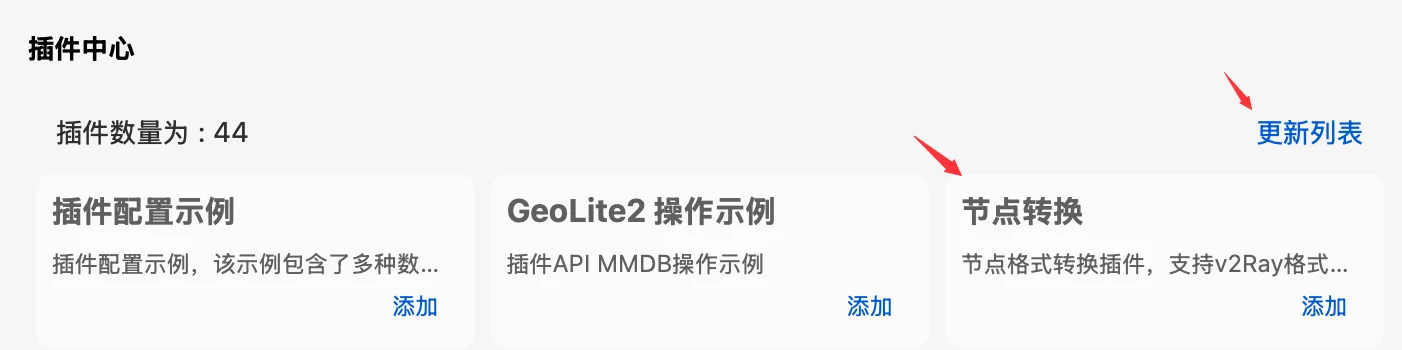很简单,在 GUI 上找到插件中心,从列表中安装。先更新列表,然后就可以看到“节点转换”了。