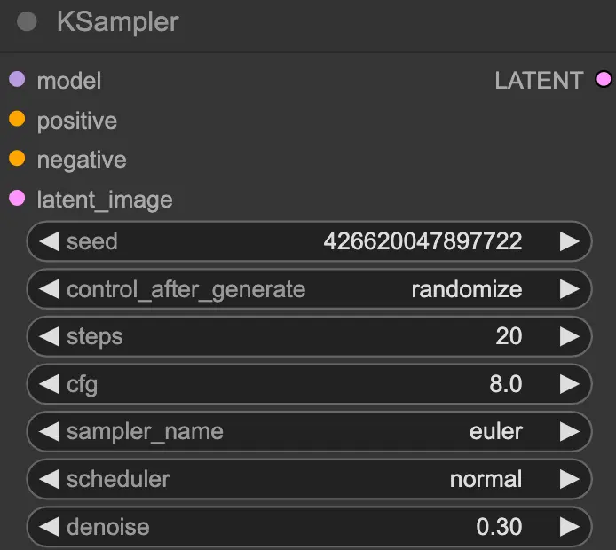 - denoise:去噪参数控制生成过程中对噪声的去除程度。较低的去噪值会使生成的图像更具随机性,而较高的值会使图像更平滑和可预测。